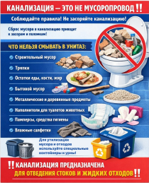 Подробную информацию о том, какие предметы не следует выбрасывать в канализацию, вы можете найти по следующей ссылке: Новости » Всплеск жалоб от жителей на засоры в канализационной системе. ГП "Калугаоблводоканал".