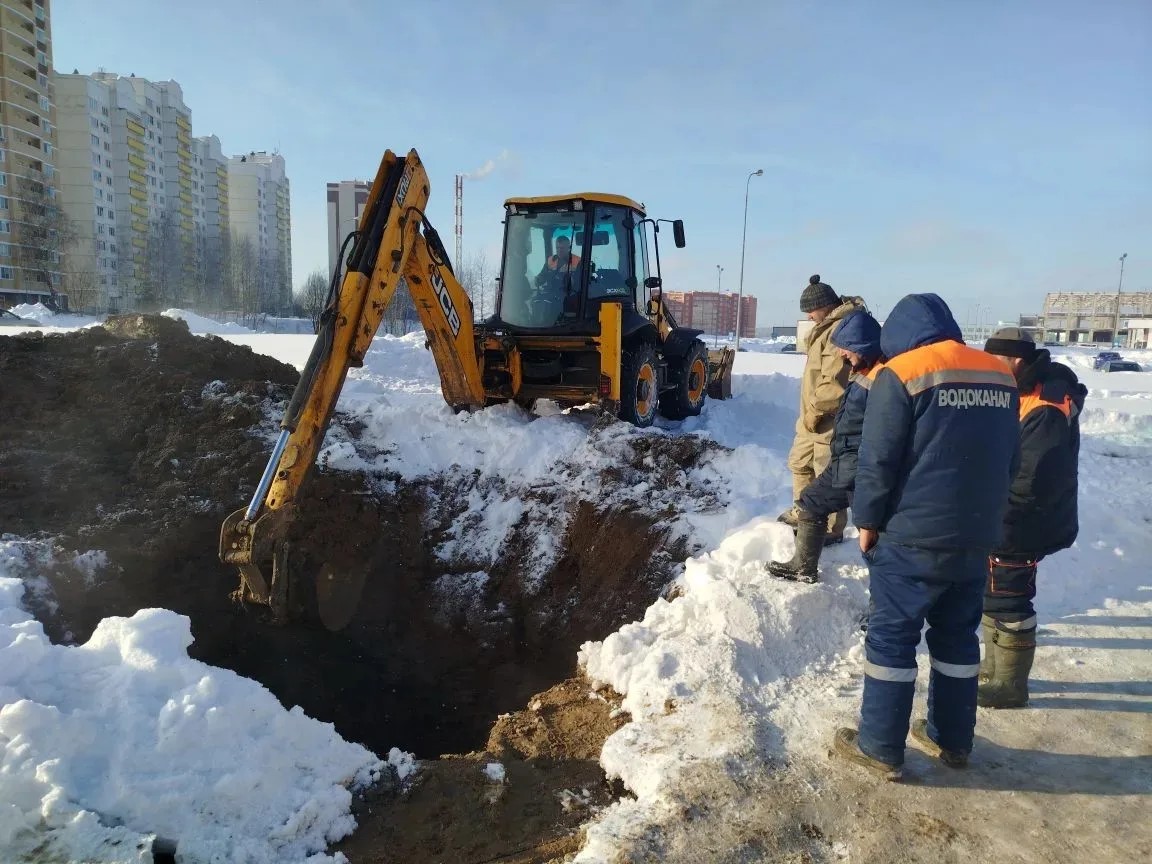 Специалисты водоканала устраняют утечку в районе "Торгового квартала"