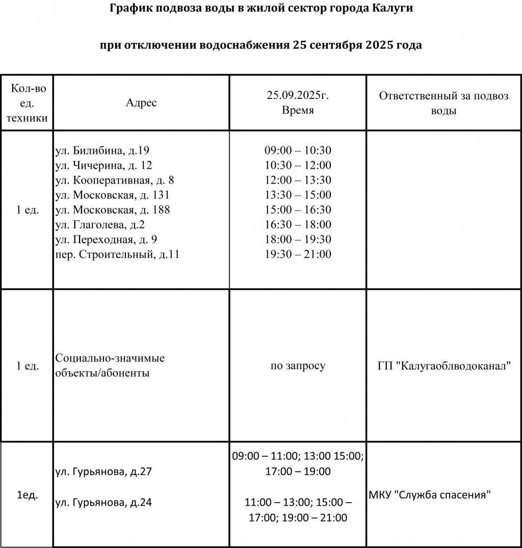 Публикуем график подвоза питьевой воды.